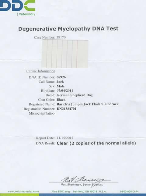 Sire - Barick's Jumpin Jack Flash v Tindrock OFA DM TC